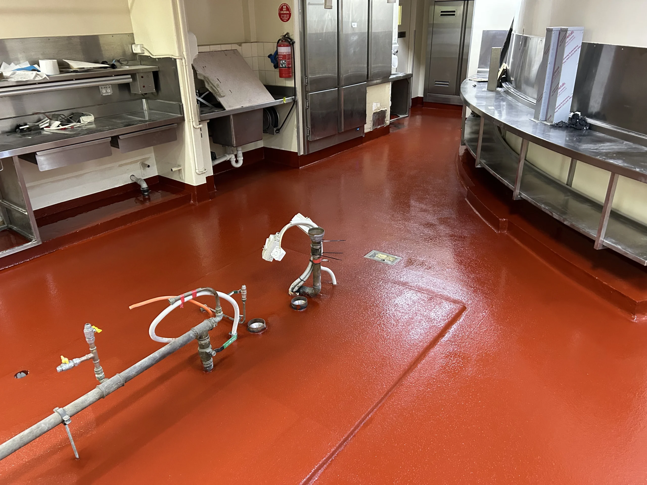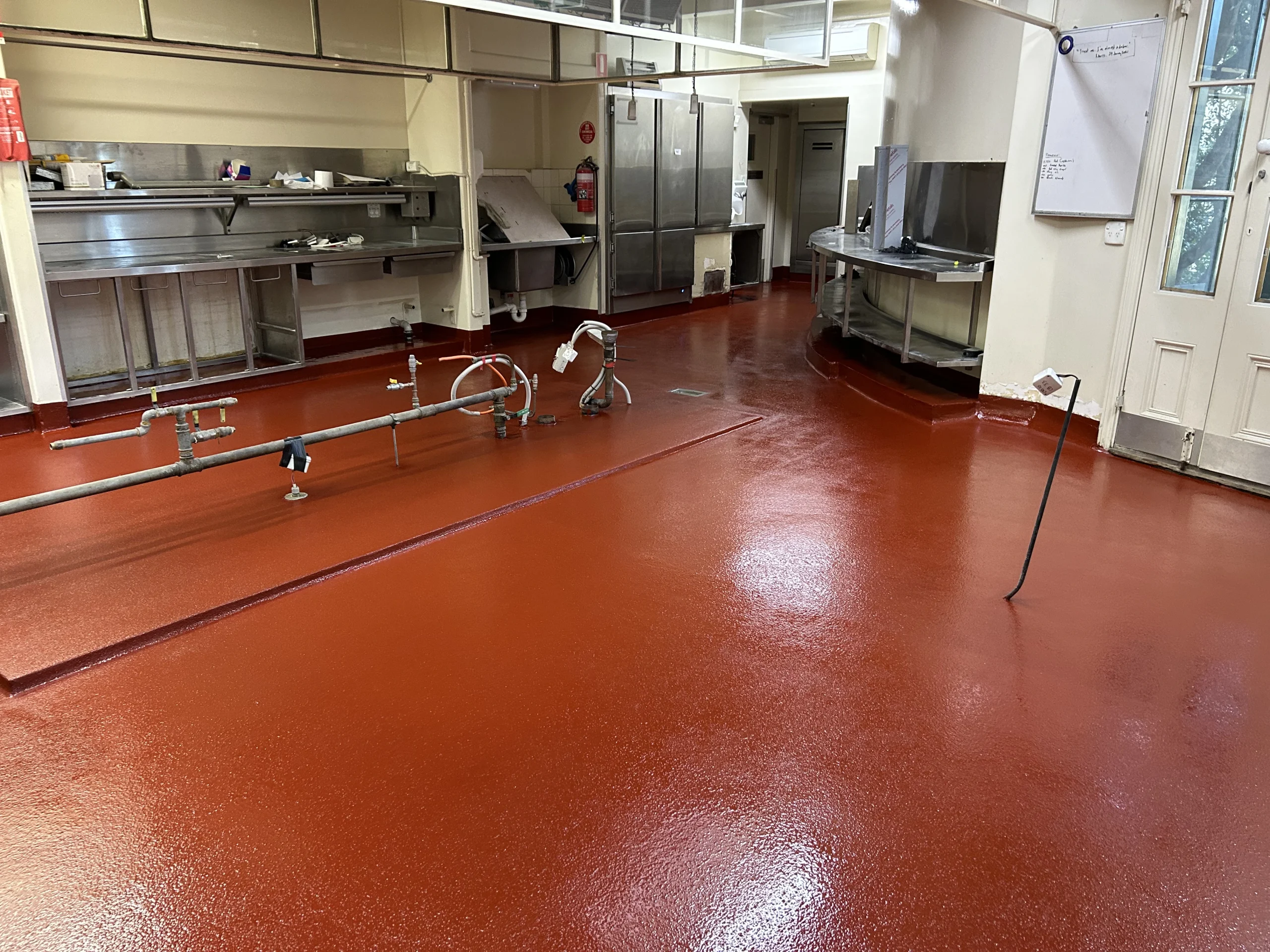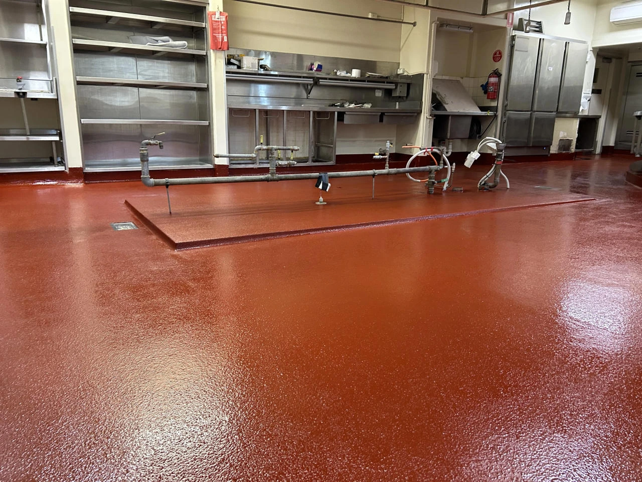 Epoxy provides food-grade flooring great for commercial kitchens, food preparation areas and commercial food production spaces. Easy to clean and resistant to stains means it is well suited to commercial food facilities. Epoxy flooring can be laid for the entire commercial food prep area including industrial cool rooms as it is unaffected by temperature.,