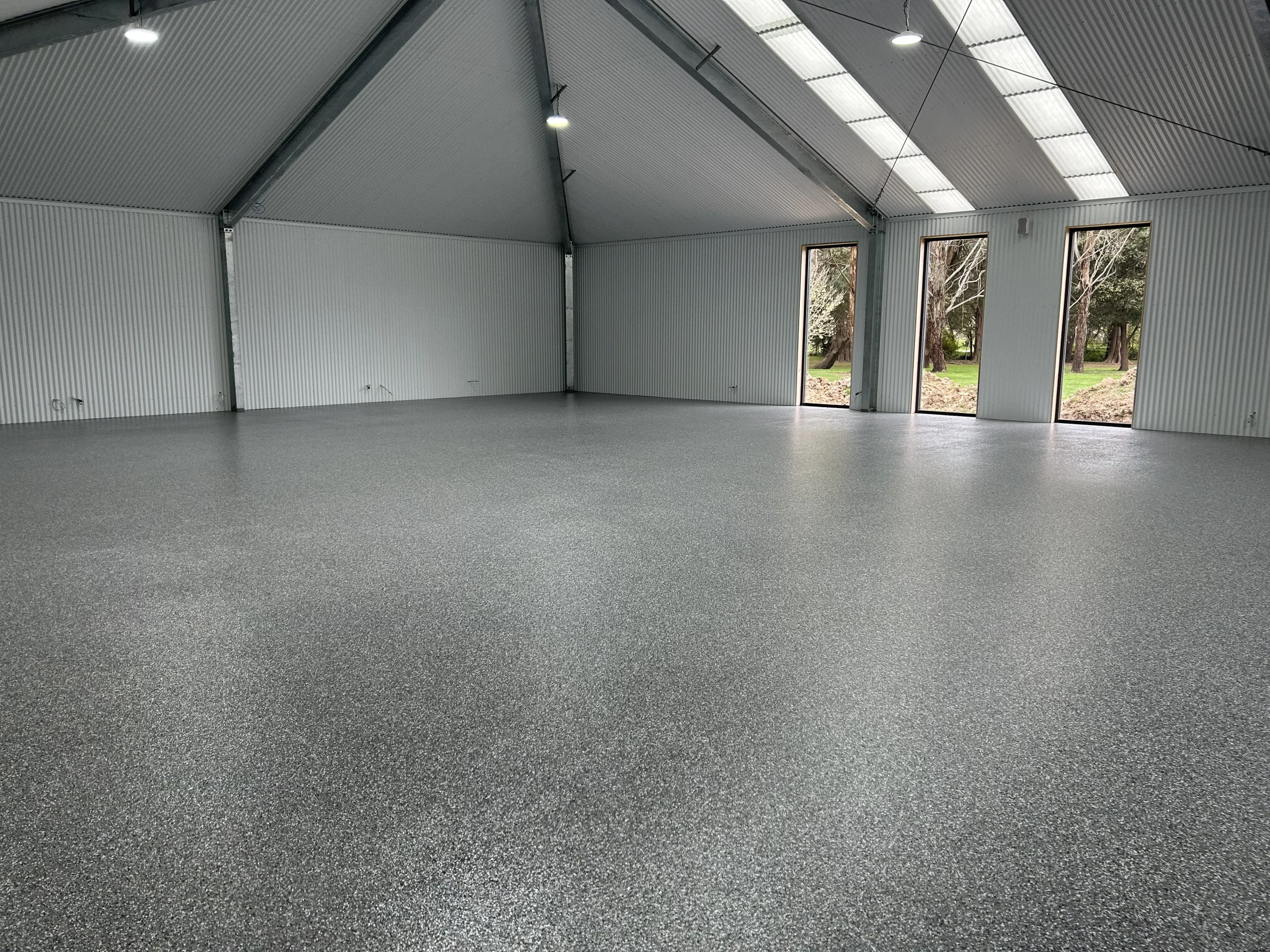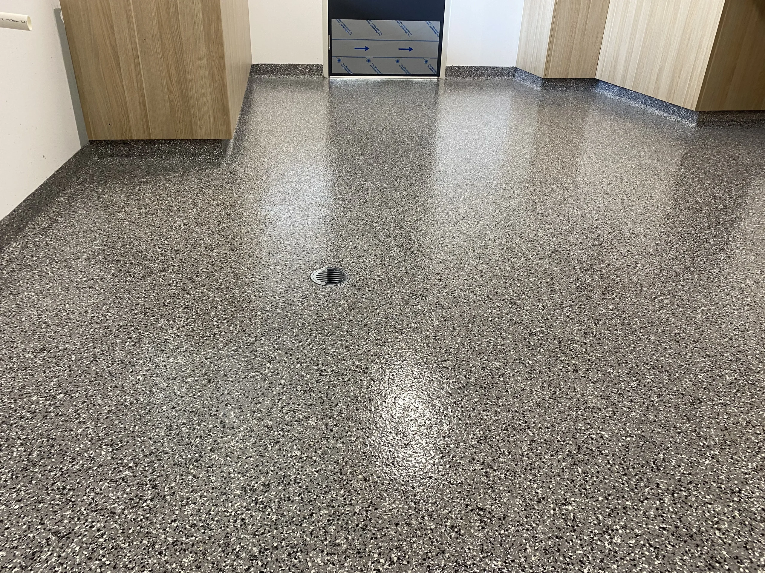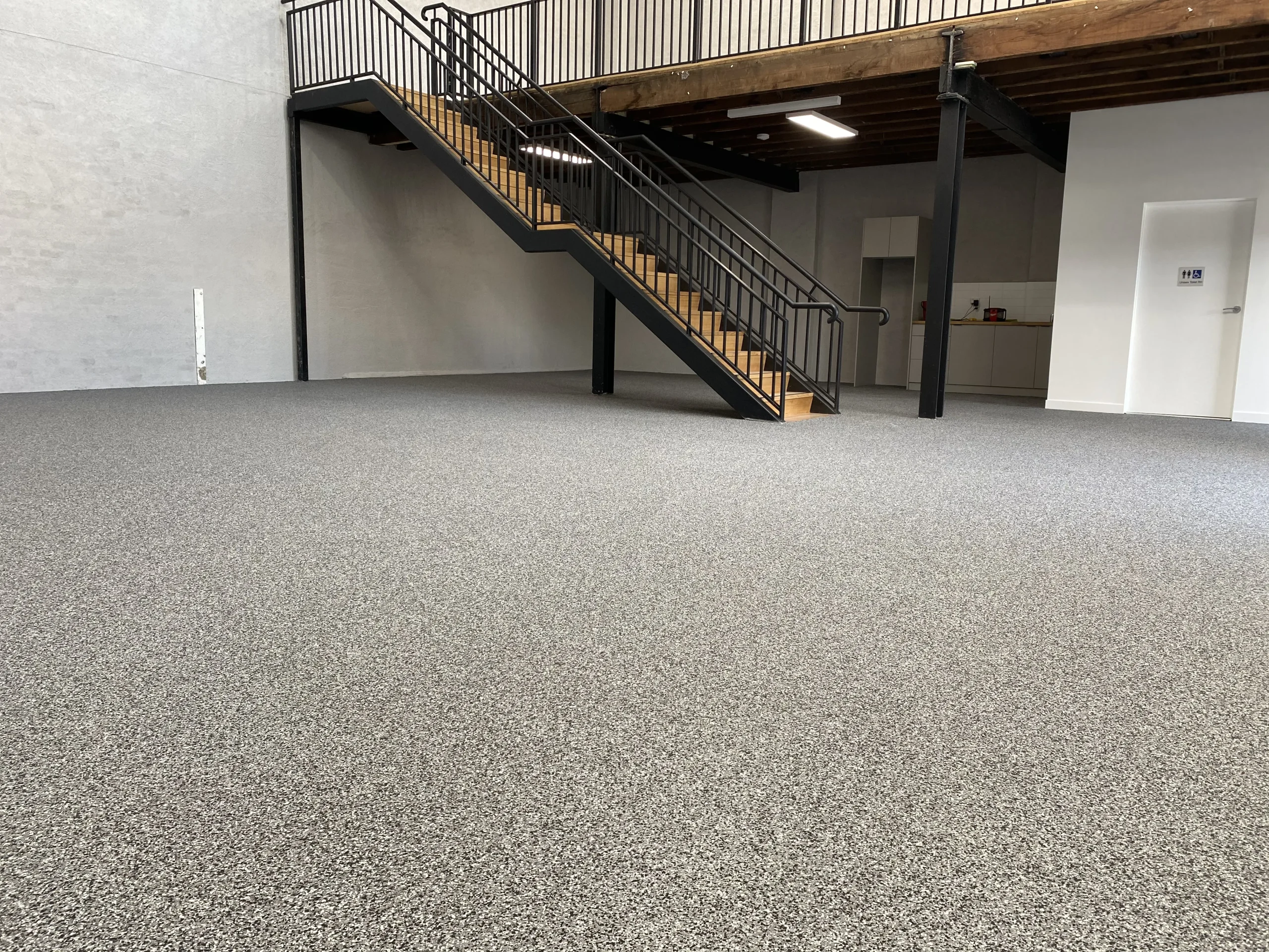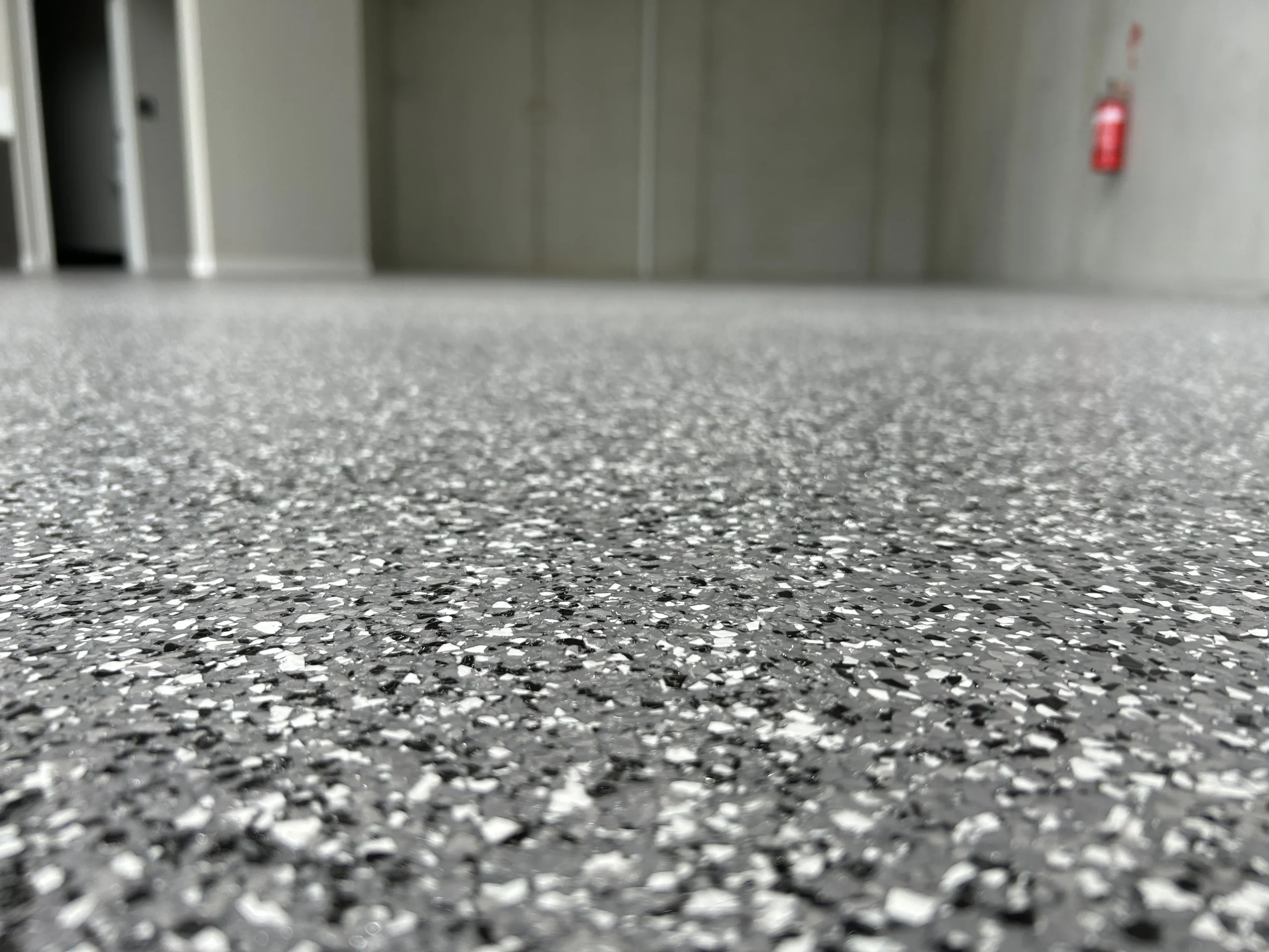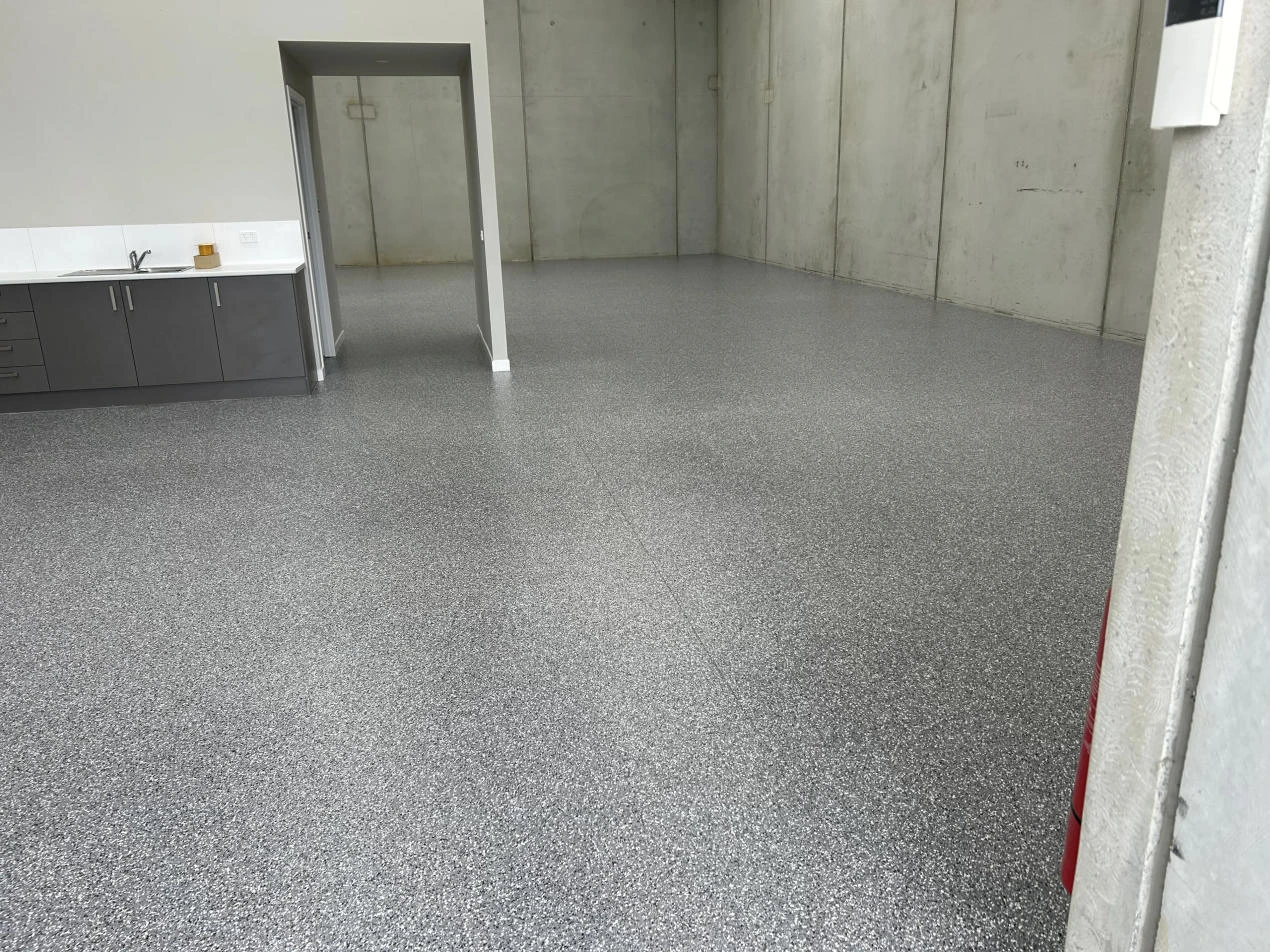 Vinyl flake flooring is a decorative epoxy coating system that is not only cost-effective but looks great and has number of different uses. No longer do you have to look at your boring old garage floor or driveway, it now can be covered in nearly any colour or tone that suits its surroundings. Vinyl flake is also widely used in cafes, offices, retail showrooms and even homes. We can cover both new and old concrete surfaces with vinyl flake flooring. As part of our service, we grind the existing concrete to be completely smooth and patch any holes or wear & tear. This flooring system is suitable for so many different spaces.