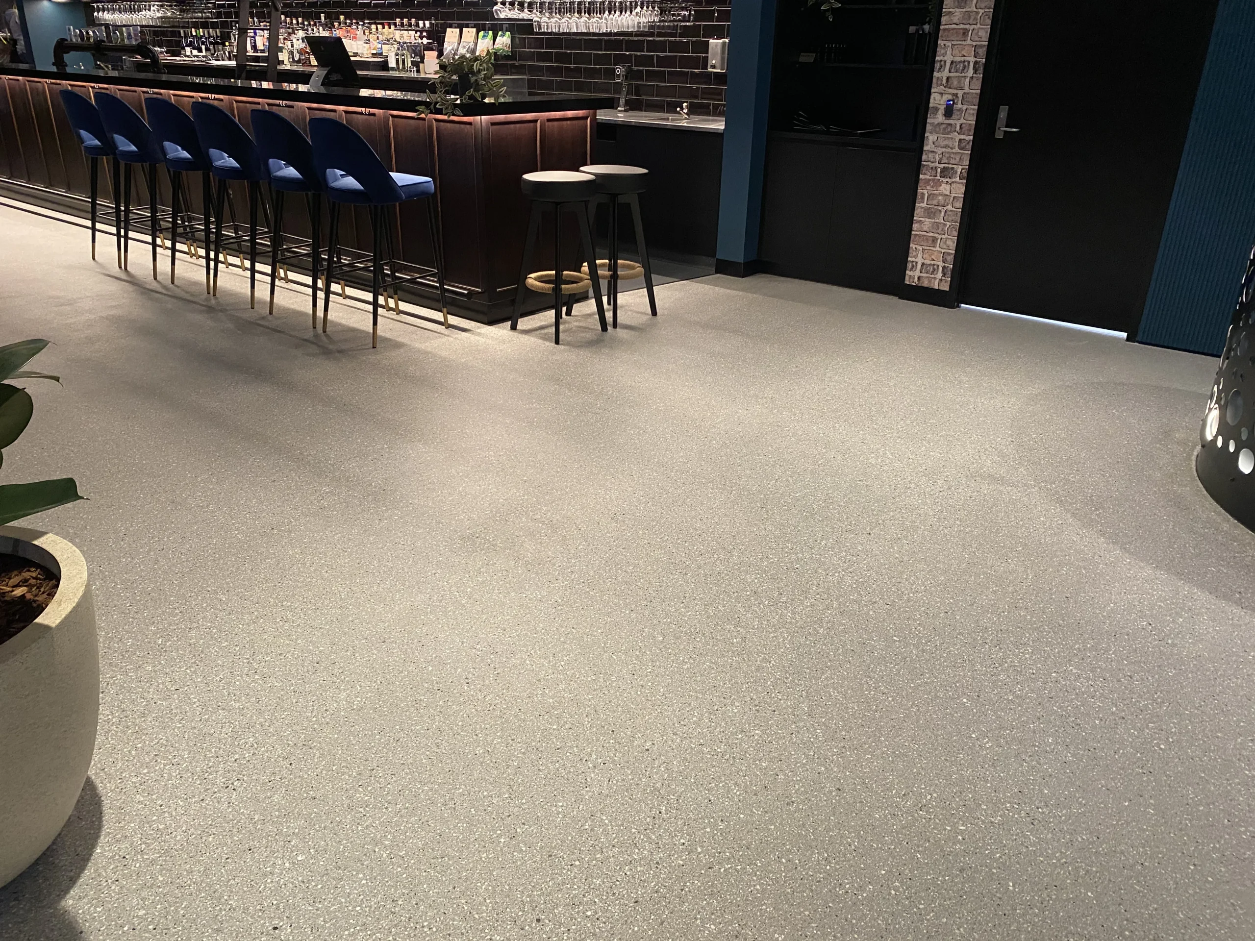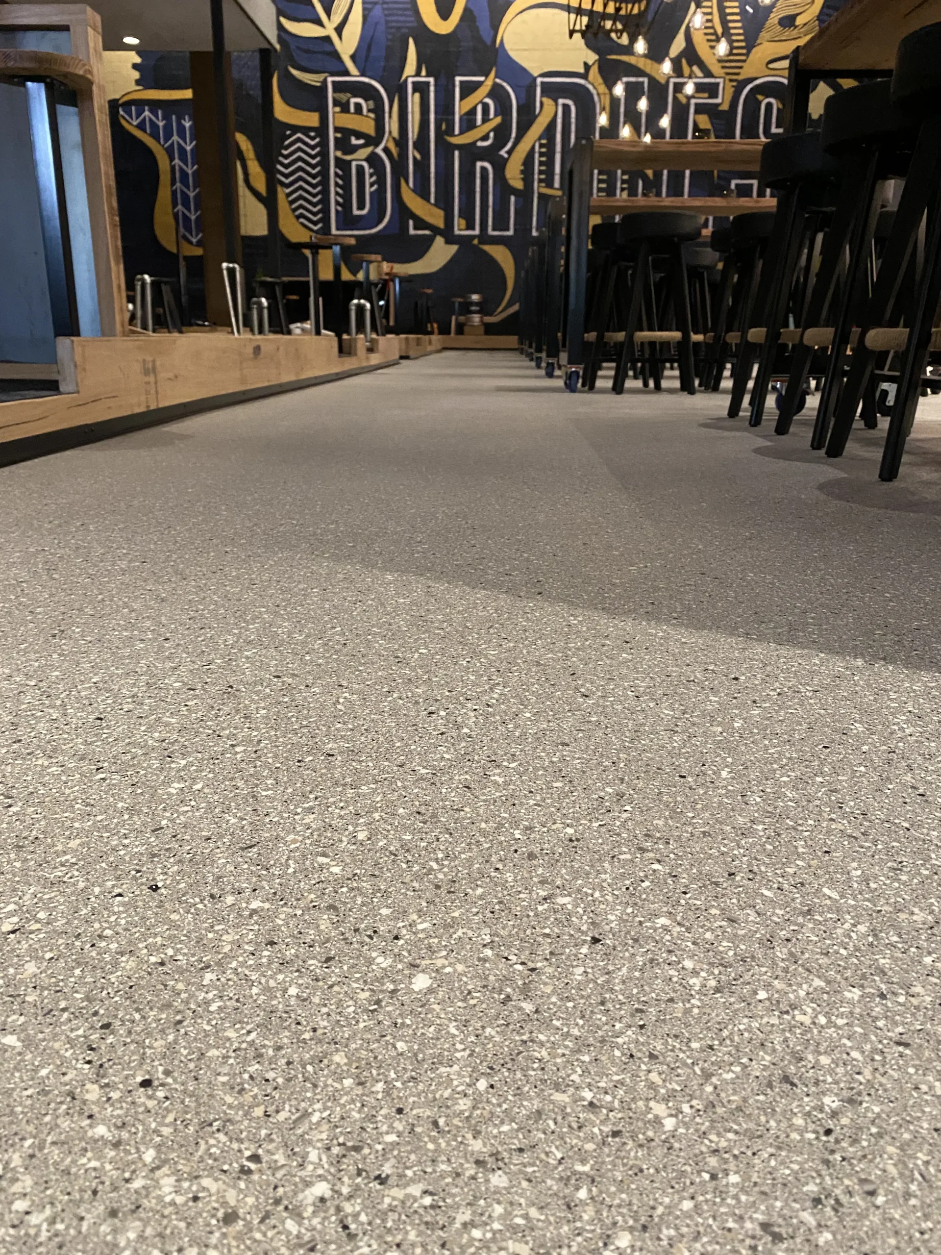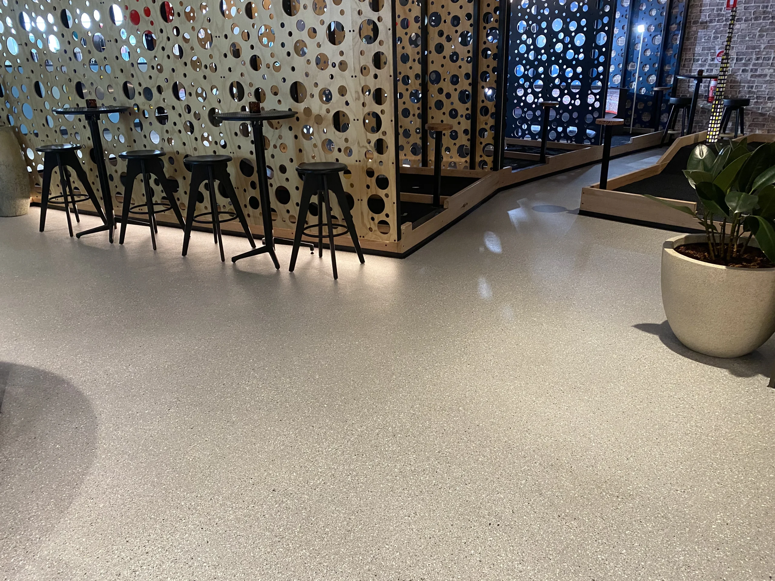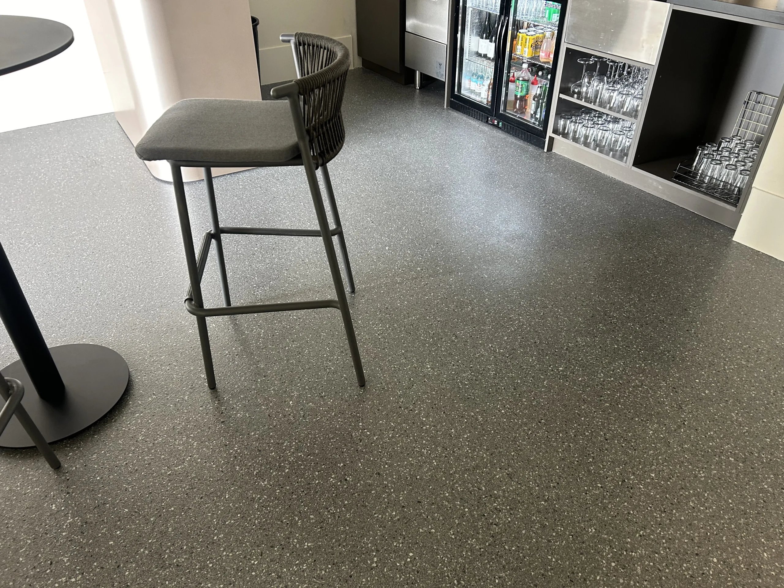 Vinyl flake flooring is a decorative epoxy coating system that is not only cost-effective but looks great and has number of different uses. No longer do you have to look at your boring old garage floor or driveway, it now can be covered in nearly any colour or tone that suits its surroundings. Vinyl flake is also widely used in cafes, offices, retail showrooms and even homes. We can cover both new and old concrete surfaces with vinyl flake flooring. As part of our service, we grind the existing concrete to be completely smooth and patch any holes or wear & tear. This flooring system is suitable for so many different spaces.