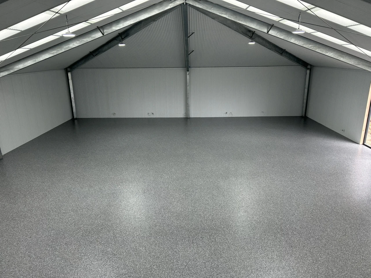 Vinyl flake flooring is both stunning in appearance and durability. It is scratch-resistant and stain-resistant, even to oil and chemical staining. This is what makes it so cost-effective for residential and commercial application. From garage flooring to high traffic warehouses. If you are unsure if your business is the right candidate for vinyl flake flooring give us a call for expert advice. The flooring will last looking shiny and new for many, many years and is so easy to clean. Plus it remains looking clean even with surface dirt, making it great for industrial businesses and commercial properties like gyms or showrooms.